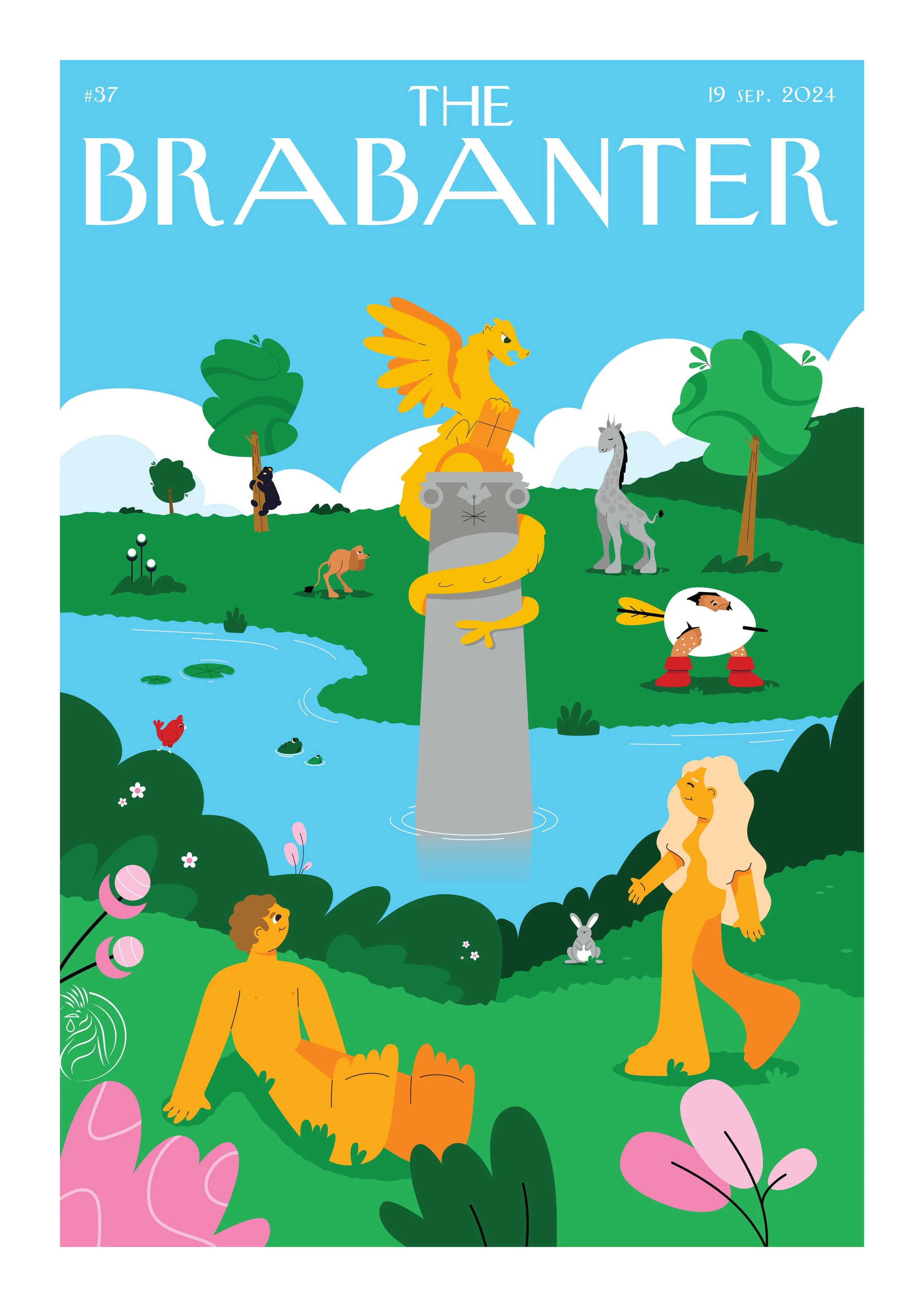 This illustration reimagines the left panel of Bosch’s iconic "Garden of Earthly Delights" by replacing the original fountain with a dragon fountain, adding a distinctive touch of ‘s-Hertogenbosch. It features various creatures from Bosch's other works, creating a vibrant and intriguing scene. The piece blends Bosch’s fantastical elements with a fresh, contemporary twist.